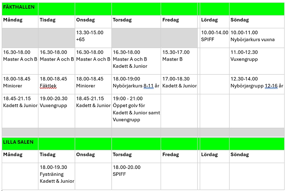 Efter höstlovet börjar nästa omgång med nybörjarkurser! Innan dess erbjuds man möjlighet att testa fäktning under ett av våra prova-på pass. Fäktning är inte bara roligt, utan även ett bra sätt att träna sig stark, utveckla sin koordinationsförmåga och förbättra sin mentala färdigheter.
